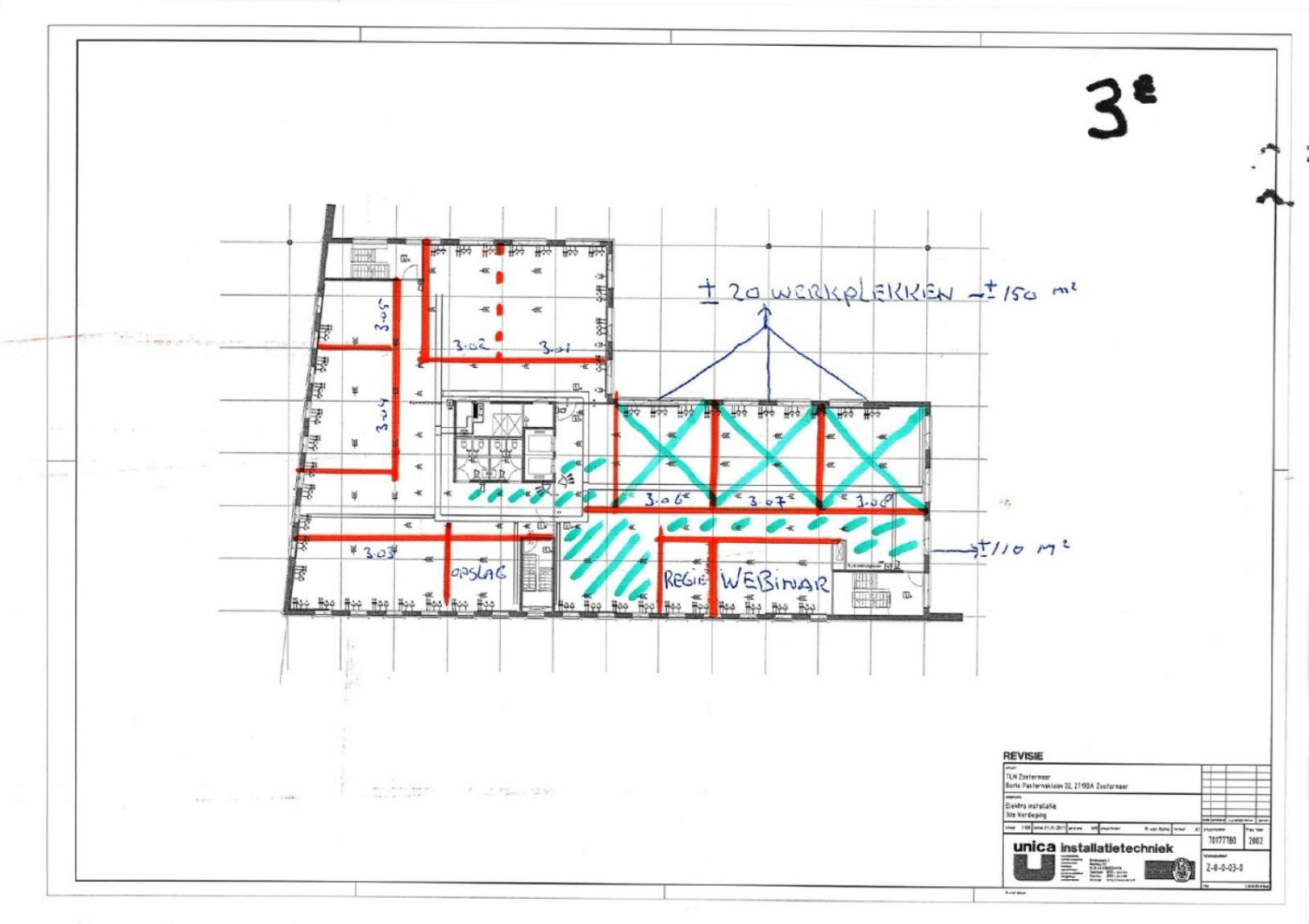 Metrage: Circa 260m² v.v.o. kantoorruimte gelegen op de 3e verdieping.