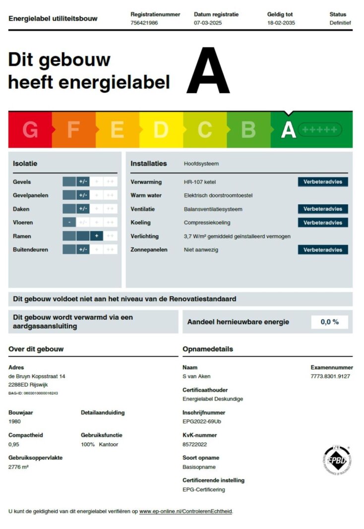 Energielabel: Label A.