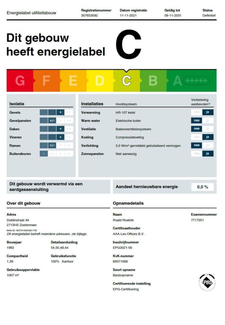 Energielabel: Label C.