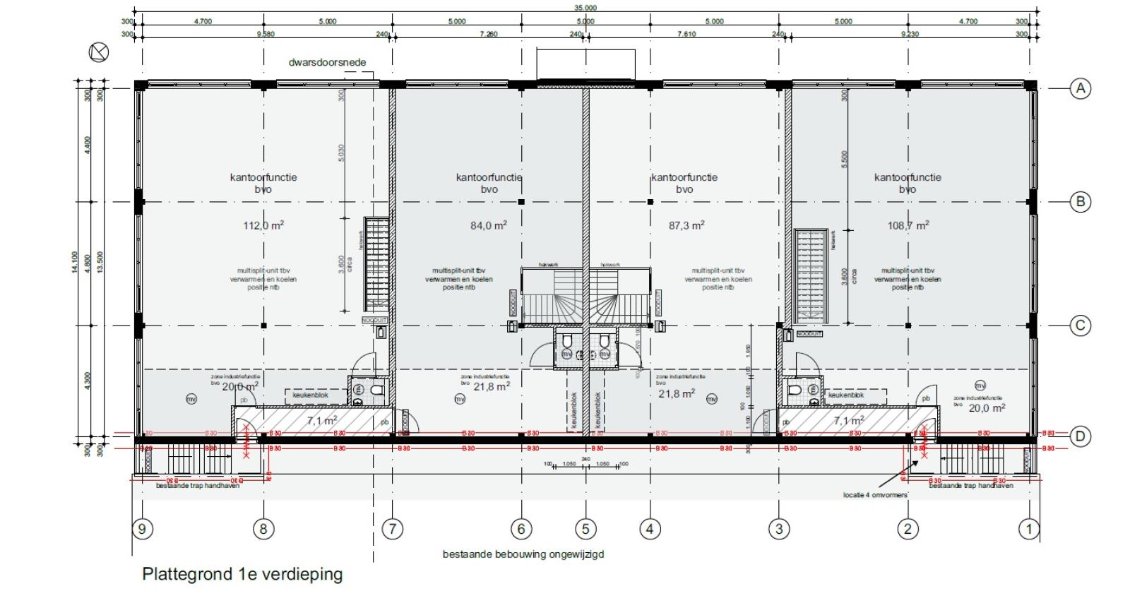 Opleveringsniveau: De bedrijfsunits worden opgeleverd met onder andere de navolgende voorzieningen: