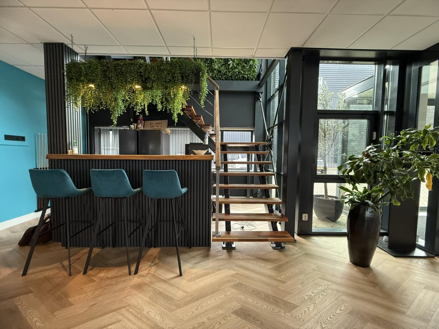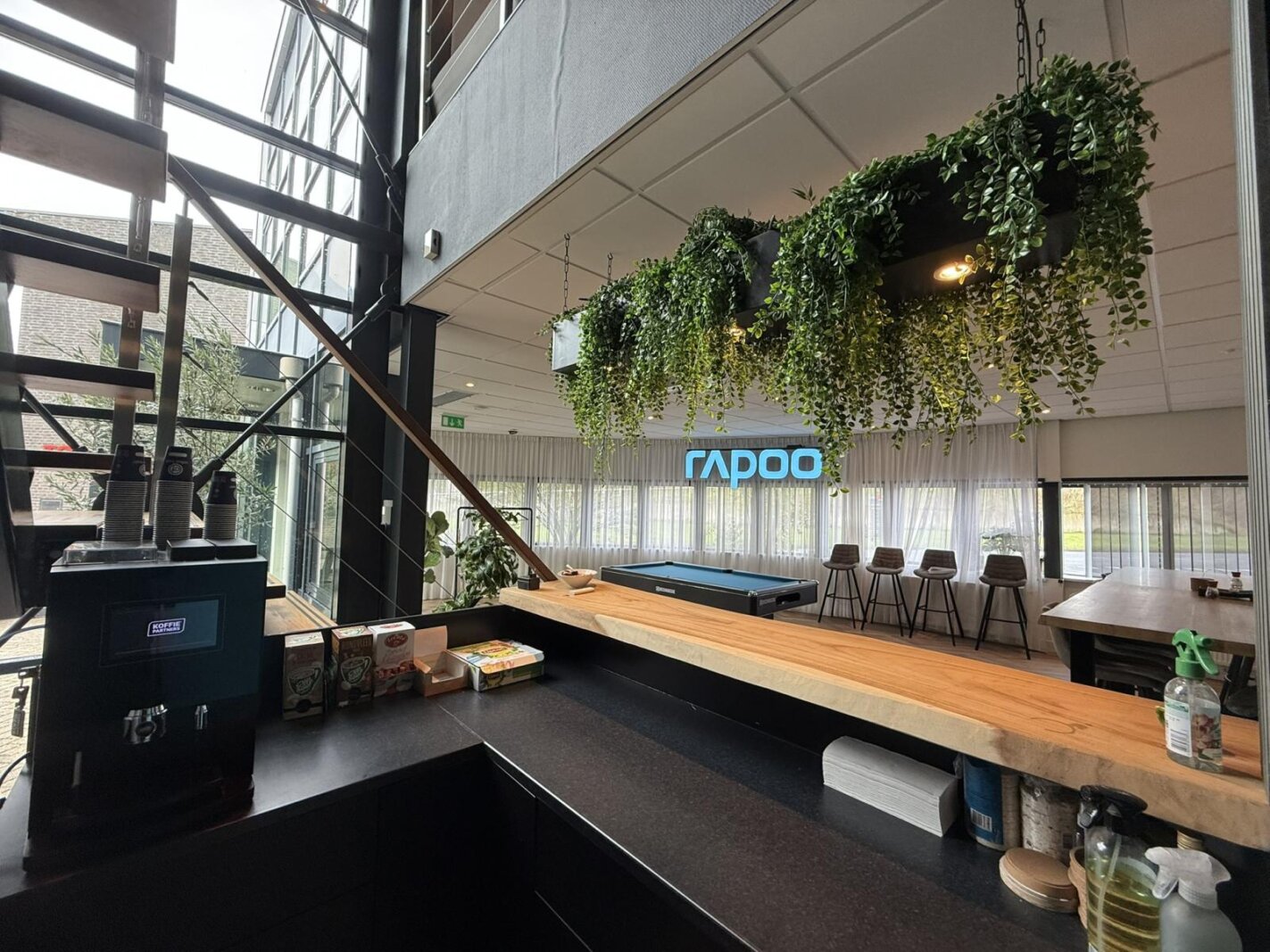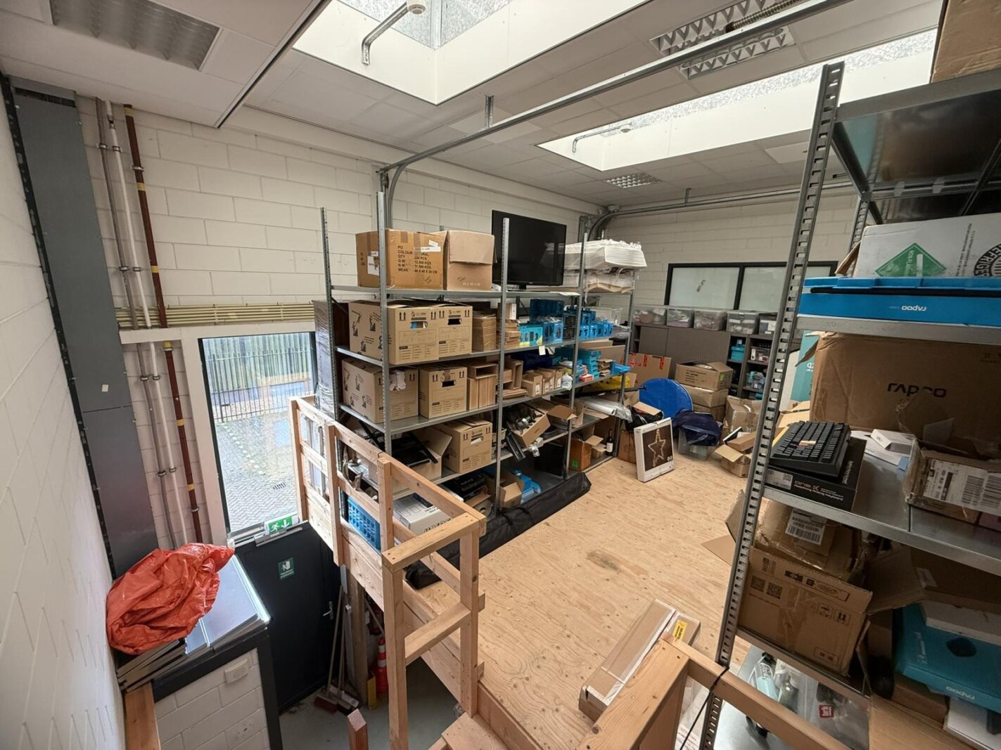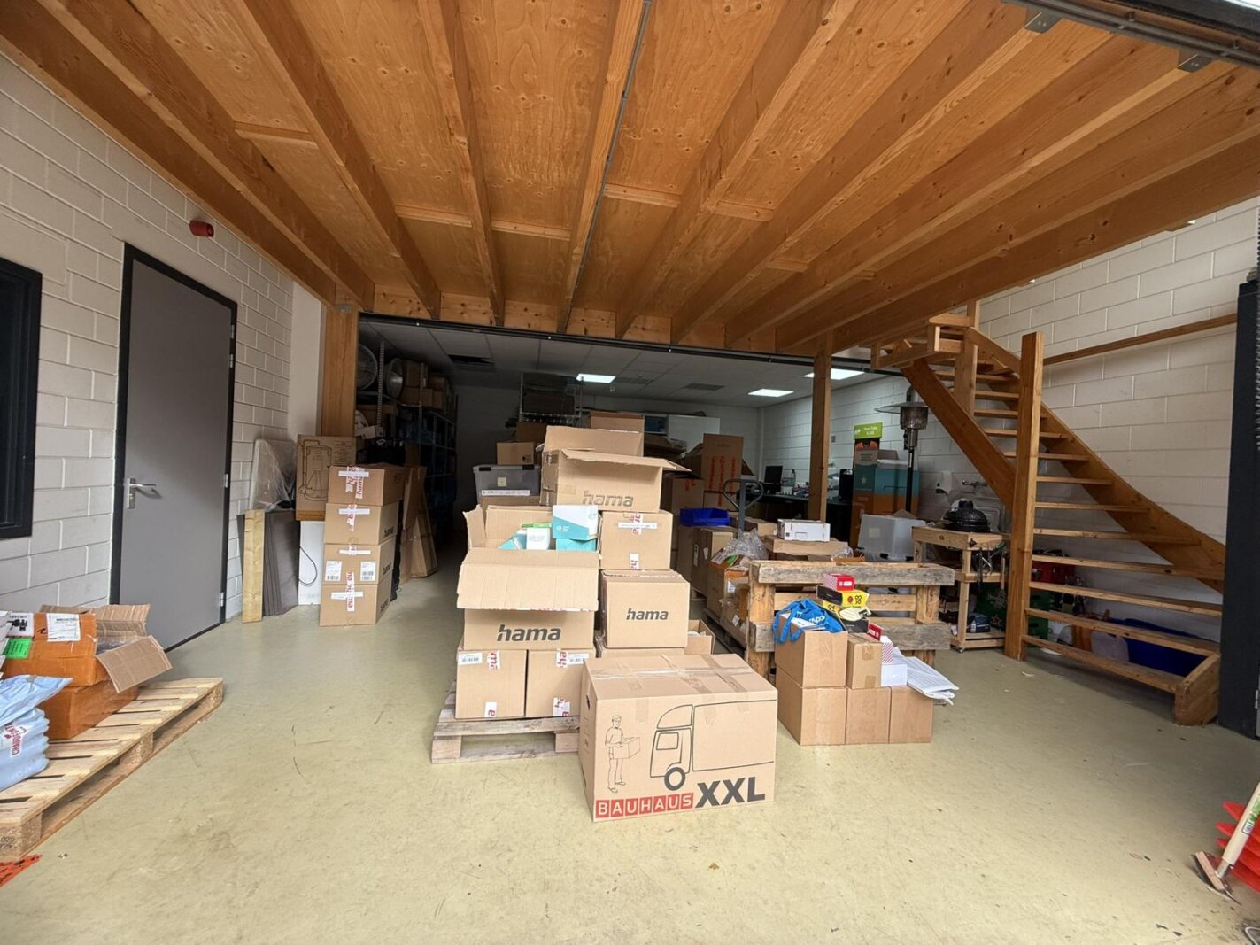 * bedrijfsruimte met trap naar entresolvloer;