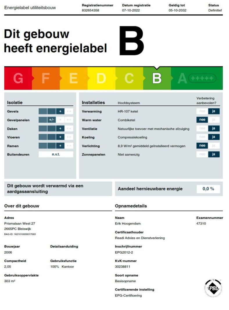 Energielabel: Label B.