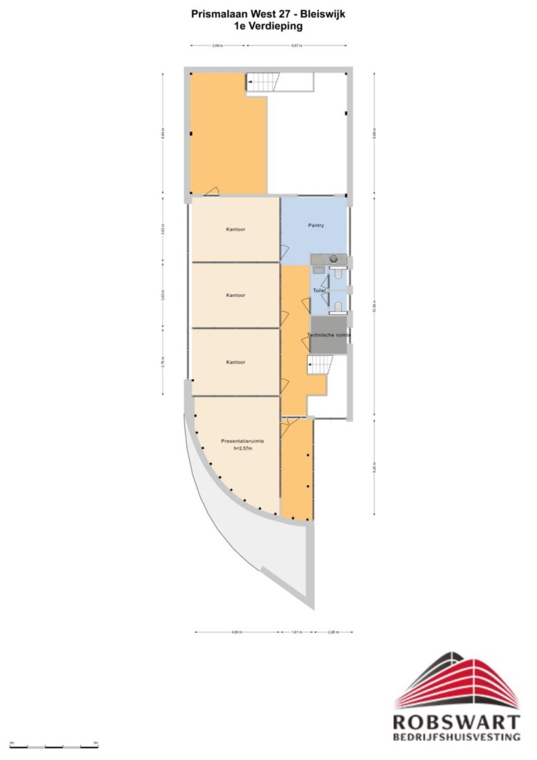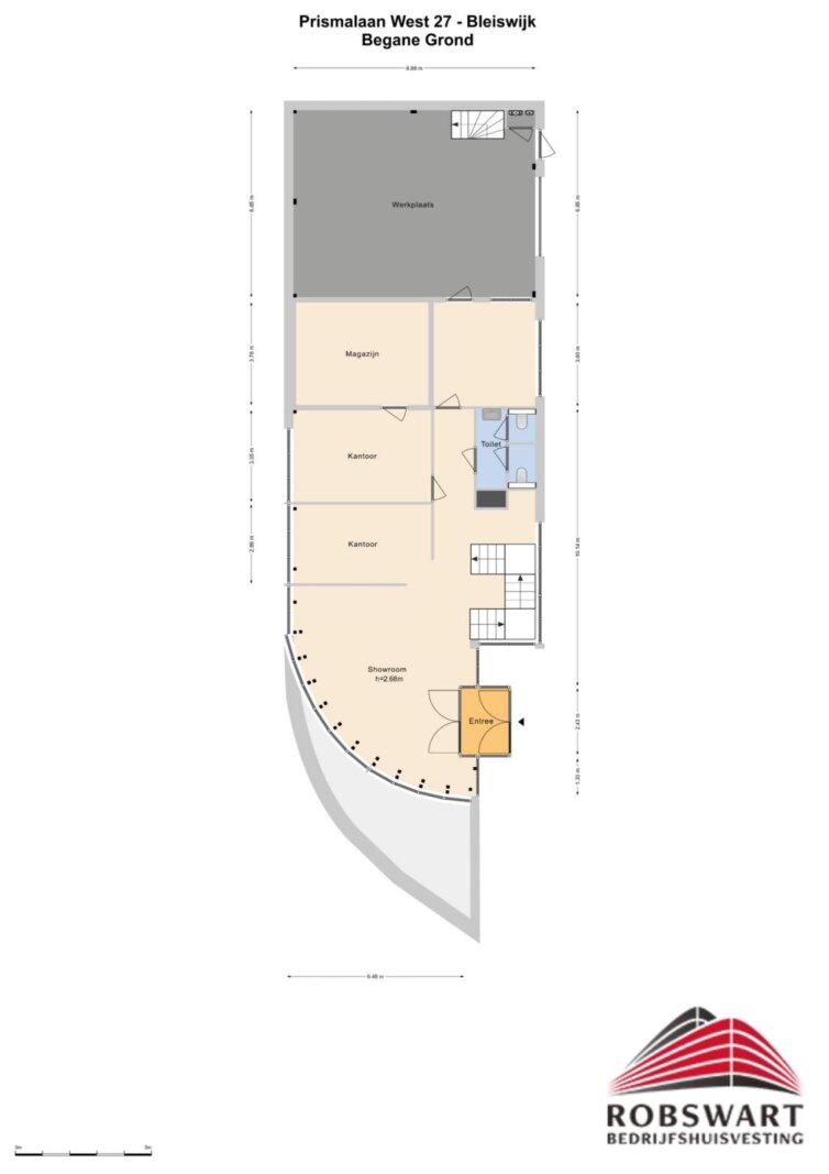 Metrage: Het kantoor-/bedrijfspand bestaat uit totaal circa 450m² b.v.o. als volgt verdeeld: