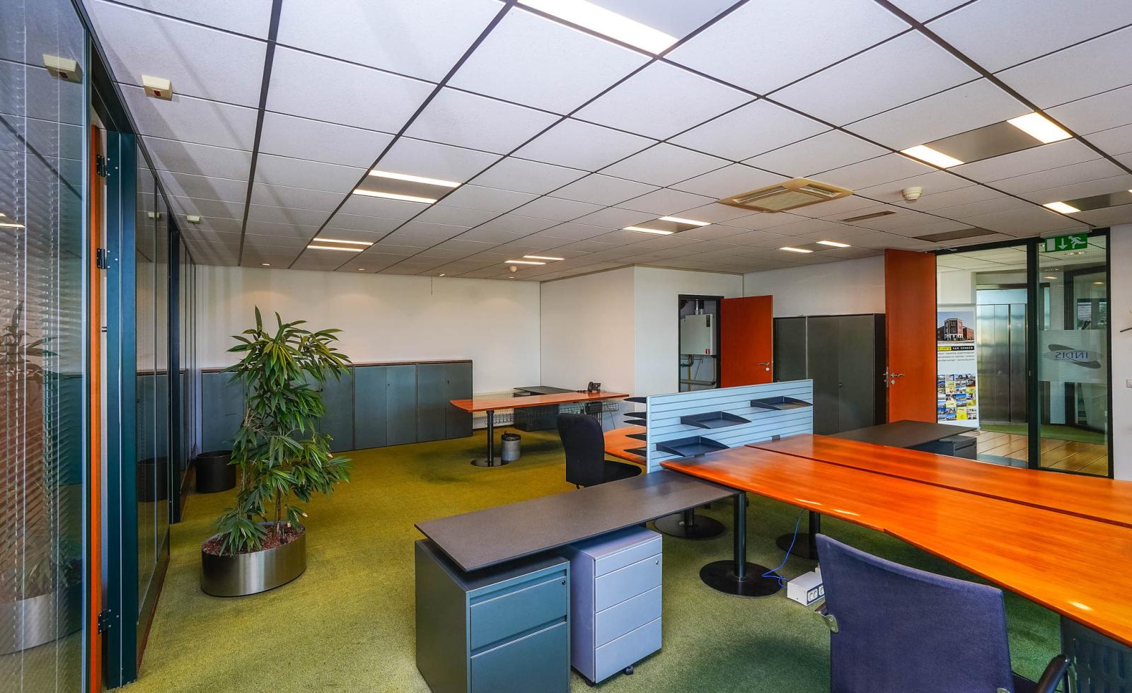Opleveringsniveau: Het kantoorgebouw heeft een hoogwaardig opleveringsniveau en is voorzien van onder andere: